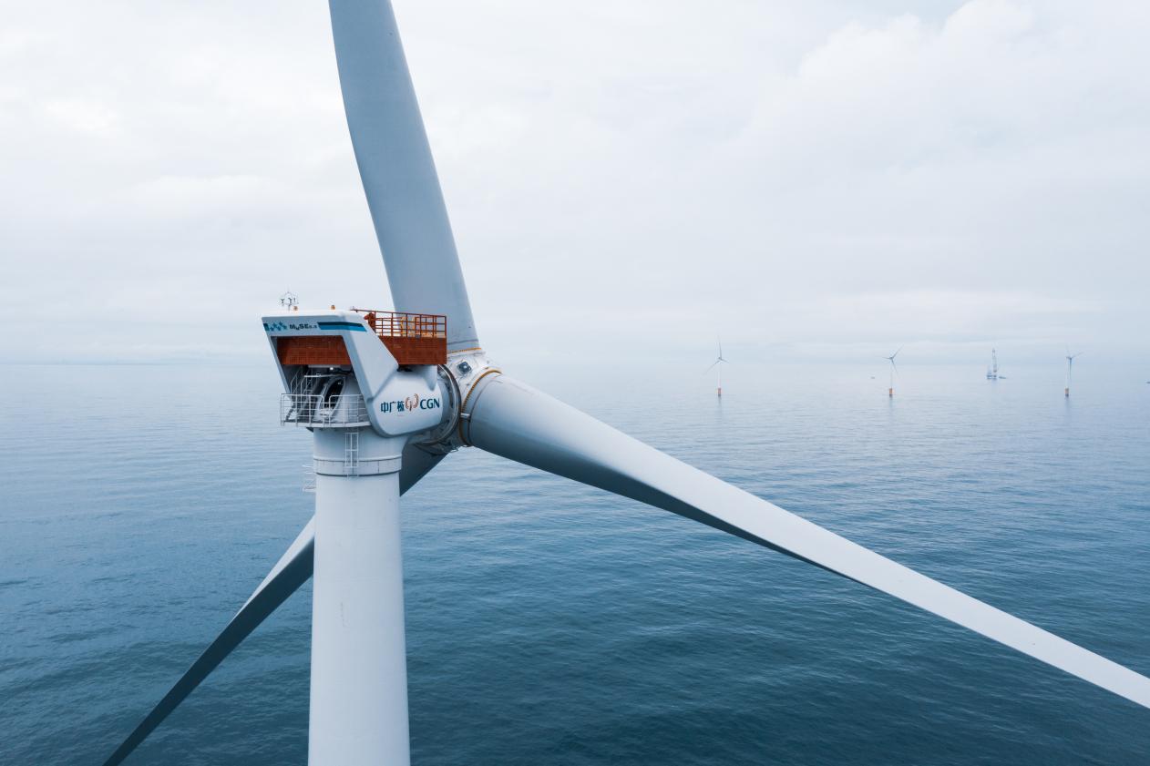 在距離陸豐核電基地16公里外的海面上,91臺高大的白色風機整齊排列著,將海風源源不斷地轉(zhuǎn)化成綠色電力。這里是中廣核汕尾后湖海上風電場,是中廣核在廣東省堅持綠色發(fā)展的又一生動實踐。項目于2021年11月25日實現(xiàn)全部機組并網(wǎng)發(fā)電,成為投運當時國內(nèi)在運單體容量最大的海上風電項目。