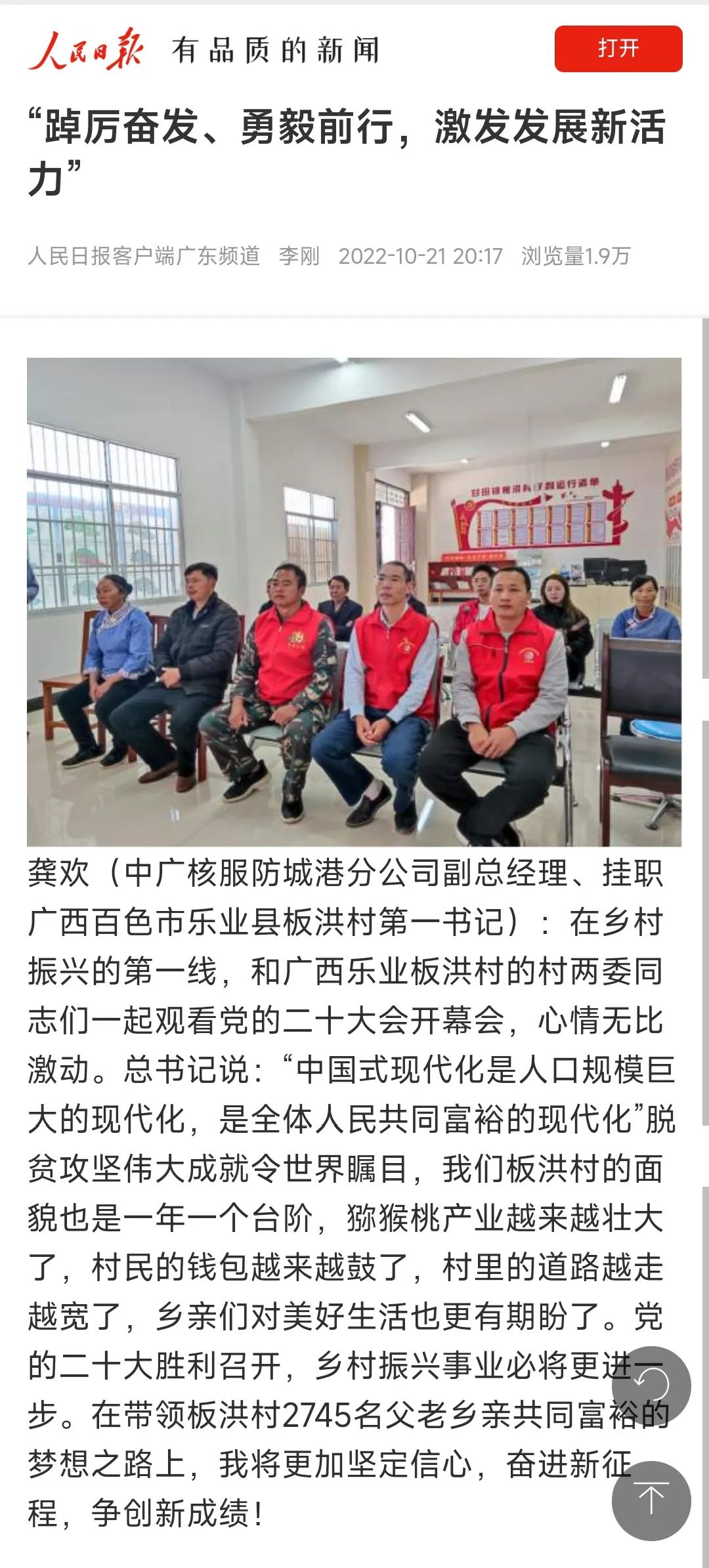 10月16日,黨的二十大勝利召開(kāi),中國(guó)廣核集團(tuán)迅速掀起學(xué)習(xí)宣傳貫徹黨的二十大精神熱潮,習(xí)近平總書(shū)記所作報(bào)告,在中廣核廣大干部員工中持續(xù)引發(fā)熱烈反響。大家表示,將結(jié)合黨的二十大報(bào)告,積極拓寬發(fā)展新思路,堅(jiān)定信心,腳踏實(shí)地向前進(jìn),堅(jiān)持高質(zhì)量技術(shù)創(chuàng)新,投身關(guān)鍵核心技術(shù)攻關(guān),為加快實(shí)現(xiàn)高水平科技自立自強(qiáng)不懈奮斗。