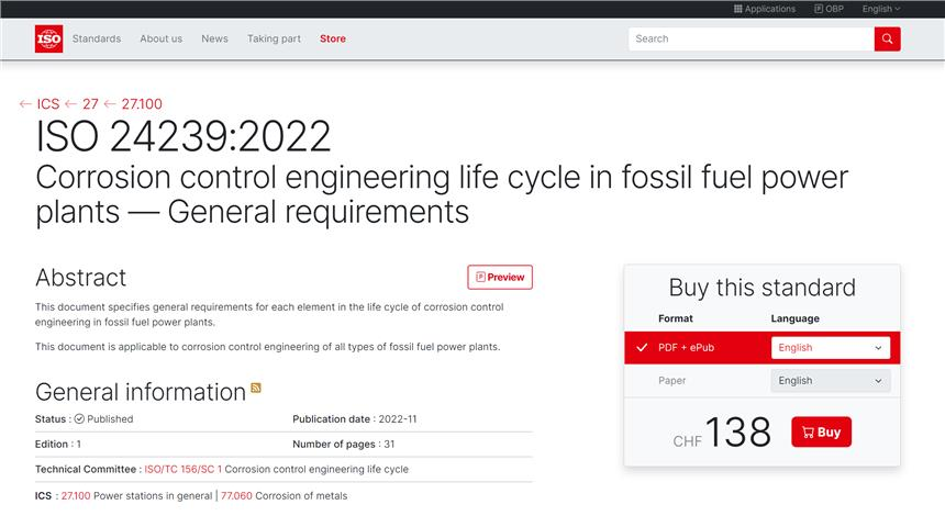 11月2日,經(jīng)國際標(biāo)準(zhǔn)化組織(ISO)技術(shù)管理局(TMB)批準(zhǔn),由蘇州熱工研究院有限公司聯(lián)合主導(dǎo)制定的國際標(biāo)準(zhǔn)ISO 24239∶2022《Corrosion control engineering life cycle in fossil fuel power plants-General requirements》正式向全世界發(fā)布。這也成為中國廣核集團(tuán)繼2020年首次以聯(lián)合主導(dǎo)身份制定頒布ISO國際標(biāo)準(zhǔn)之后斬獲的又一重要科技成果。