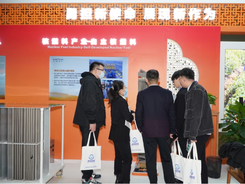 開(kāi)幕式后,與會(huì)嘉賓來(lái)到中廣核展臺(tái),聽(tīng)取并了解中廣核近年來(lái)在“華龍一號(hào)”批量化建設(shè)、科技創(chuàng)新等方面的高質(zhì)量發(fā)展成果。