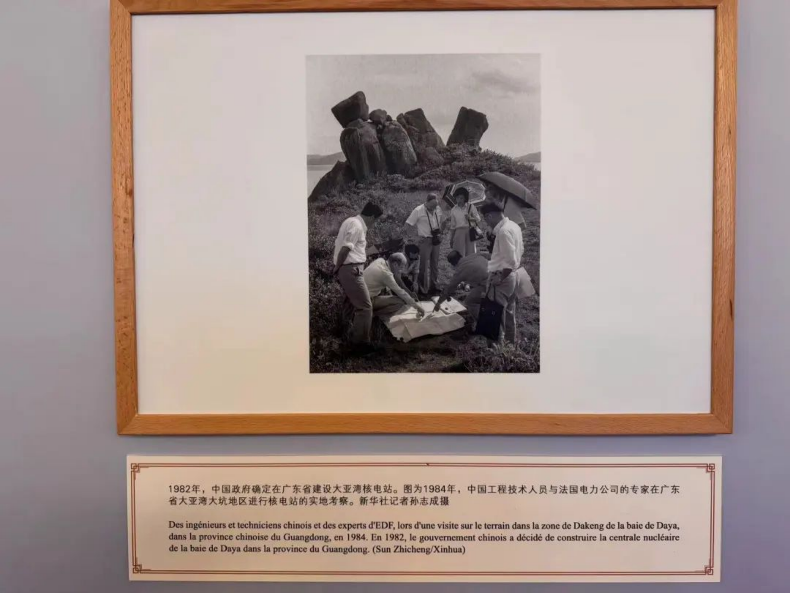▲中法建交60周年圖片展中,大亞灣廠址考察歷史照片