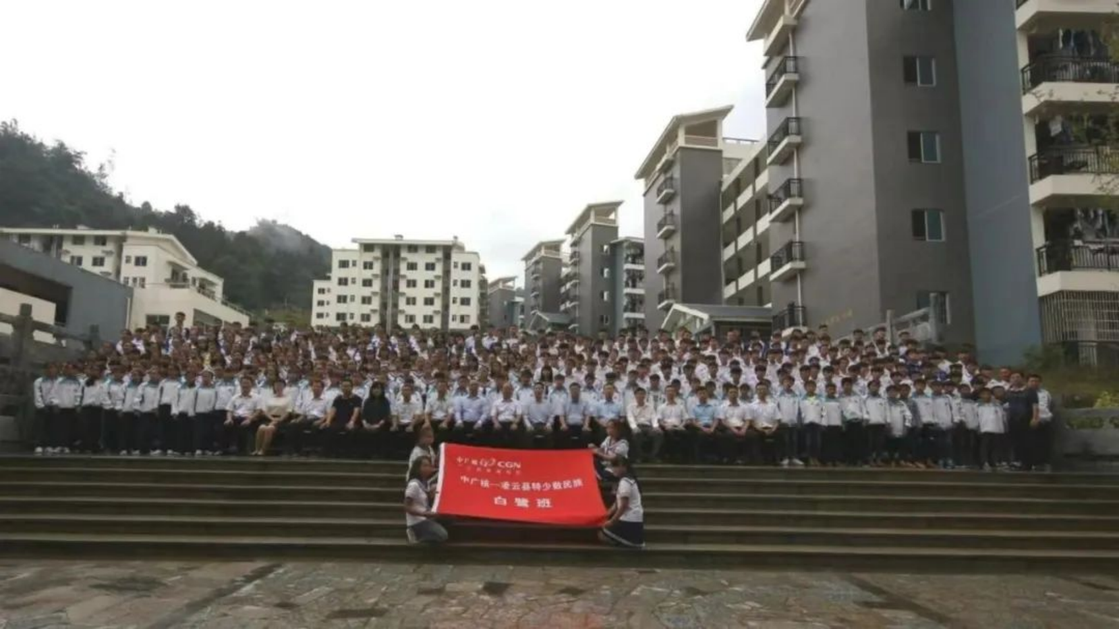 ▲2017年10月,中廣核首期教育幫扶白鷺班——“中廣核-凌云縣特少數(shù)民族白鷺班”開(kāi)班儀式在廣西凌云縣中學(xué)舉行