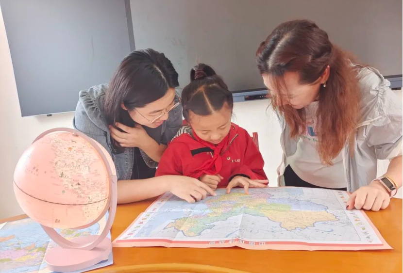 ▲志愿者為孩子講解“小小地理課”