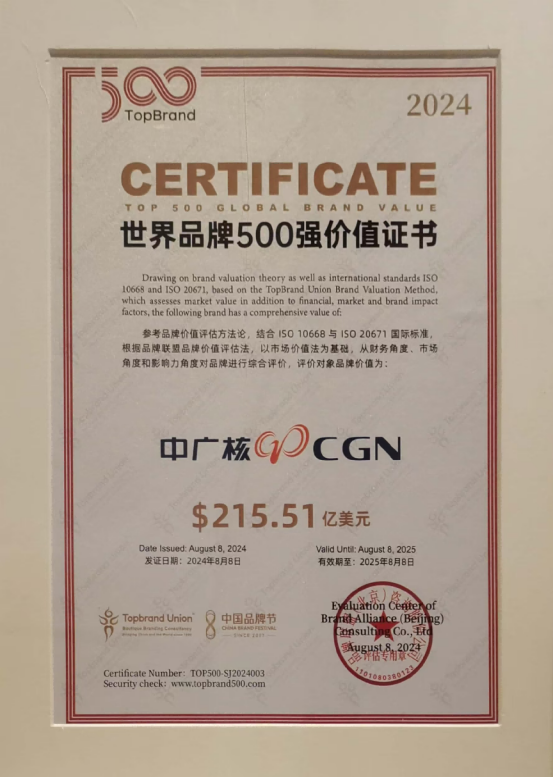 這是今年以來,中廣核在取得國務院國資委2023年度中央企業(yè)品牌建設對標第12名的歷史最好成績之后,再次實現(xiàn)品牌質效和價值提升的重大突破,標志著中廣核大力推動實施品牌建設三年行動、加快打造一流卓著品牌取得新成效,有力支撐企業(yè)高質量發(fā)展。