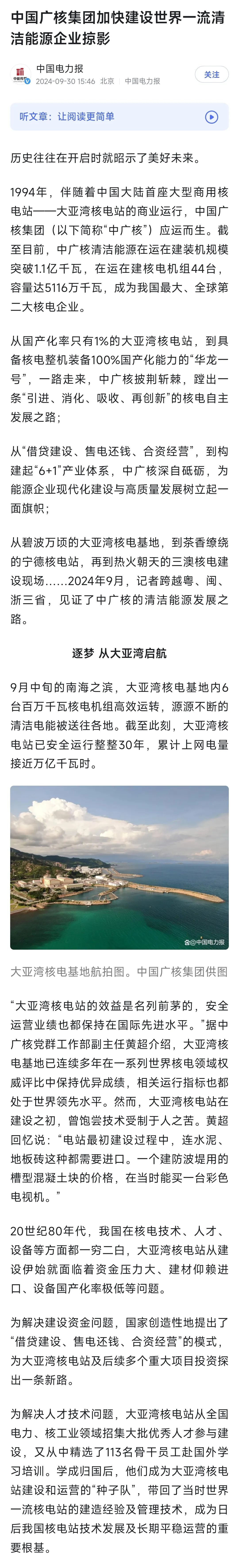 聚焦報(bào)道了中廣核從大亞灣核電站起步