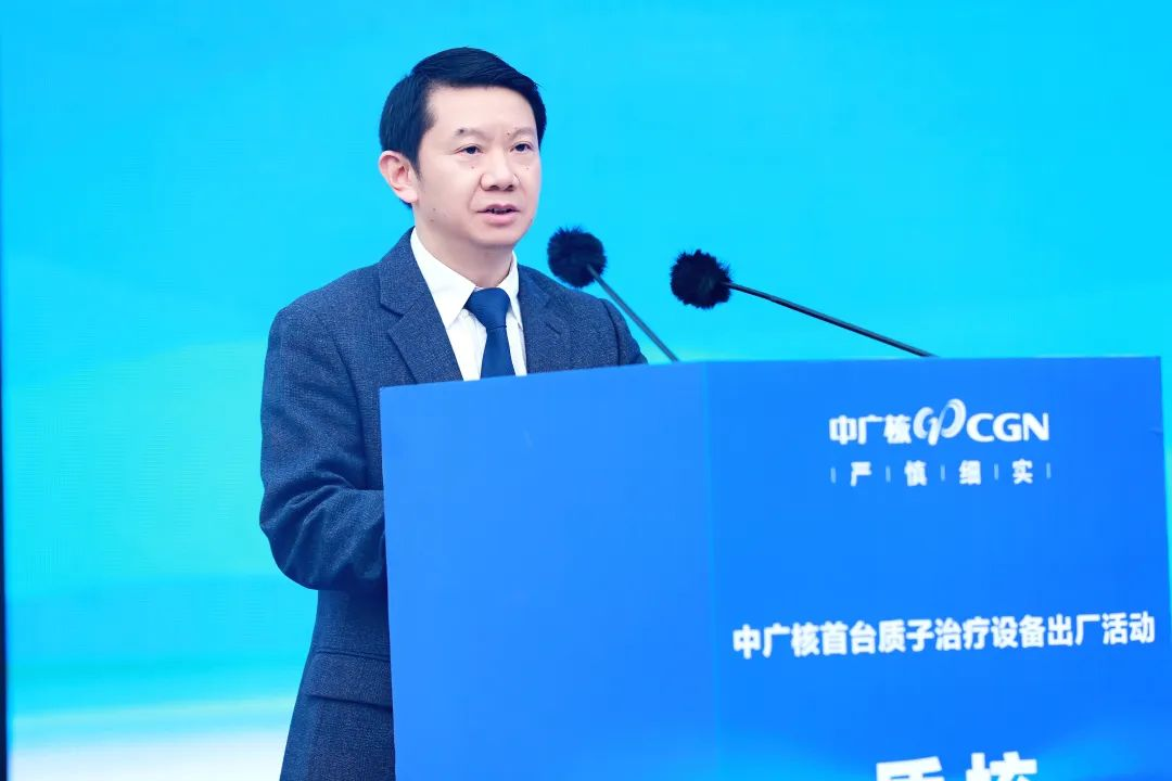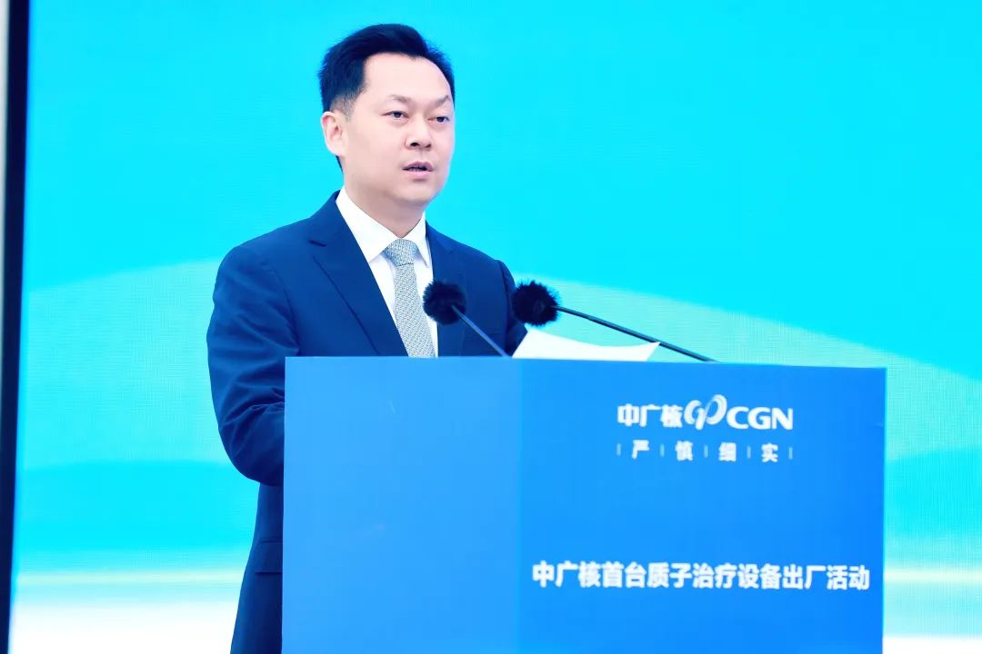 當(dāng)日下午,中廣核首臺(tái)質(zhì)子治療設(shè)備出廠活動(dòng)在四川綿陽(yáng)核醫(yī)療健康產(chǎn)業(yè)園舉辦。中國(guó)廣核集團(tuán)有限公司黨委副書記、總經(jīng)理高立剛,四川省經(jīng)濟(jì)和信息化廳黨組成員、副廳長(zhǎng)曾吉明,綿陽(yáng)市政府黨組成員、副市長(zhǎng)鄧輝,成都醫(yī)投華西國(guó)際腫瘤治療中心醫(yī)院院長(zhǎng)曾勇出席大會(huì)并致辭。集團(tuán)公司黨委常委、副總經(jīng)理李亦倫主持會(huì)議。四川省科學(xué)技術(shù)廳黨組成員、副廳長(zhǎng)楊品華,四川省衛(wèi)健委副主任、機(jī)關(guān)黨委書記張峰,四川省政府駐廣州辦事處主任王德勝,四川省藥品監(jiān)督管理局副局長(zhǎng)周全,綿陽(yáng)市委副書記、政法委書記黃朝陽(yáng),綿陽(yáng)市人大常委會(huì)副主任文剛,中國(guó)工程物理研究院核物理與化學(xué)研究所總工程師、涪江實(shí)驗(yàn)室主任彭述明,綿陽(yáng)市游仙區(qū)委書記韓曉清,成都醫(yī)療健康投資集團(tuán)有限公司總經(jīng)理李柯出席大會(huì)。