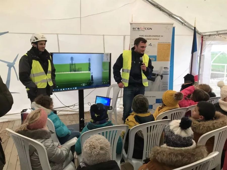 12月12日,在巴黎協(xié)定簽署4周年之際,中廣核歐洲能源公司(以下簡稱“歐能公司”)在夏爾蒙風(fēng)電場舉辦2019年第二次公眾開放日,除了周邊居民,120名附近的小學(xué)生和多家法國媒體及中國駐法媒體不顧寒冷的天氣前來“打卡”風(fēng)電場。