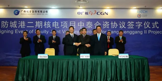 12月23日,中國廣核集團(tuán)與廣西投資集團(tuán)有限公司、泰國國家電力公司子公司RATCH在廣西南寧正式簽署了《防城港核電二期項(xiàng)目合資協(xié)議》。根據(jù)協(xié)議,三方將在中泰兩國政府間和平利用核能協(xié)議的基礎(chǔ)上,合資成立防城港核電二期項(xiàng)目公司,共同開發(fā)、建設(shè)和運(yùn)營該項(xiàng)目。